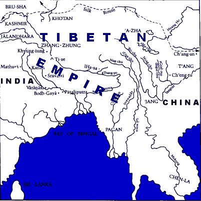 These three eminent doctors set down severally the essentials of their healing arts in texts in the new language. More interestingly, they produced a seven-chapter treatise ("The Weapon of the Fearless") based upon their mutual discusssions and interaction. The first two eventually returned to their homeland but Galenos remained as Court Physician, married and had three sons whom he trained as doctors and who subsequently spread the medical science in northern, central and southern Tibet. There was also a royal programme for training bright boys to become doctors. 8th CENTURY: Many medical texts were translated into Tibetan (mostly from Chinese) in the first half of the 8th century and a first set of medical ethics were laid down for court and other physicians. The major event in Tibetan history, however, was the reign of King Khri-srong-lde-btsan during the latter half of the century. It was he who firmly established Buddhism in Tibet and under whose patronage hundreds of bright children were trained as translators to bring the best of Asian civilisation to the land. Of particular note was Vairocana, who mastered and translated the Fourfold Medical Treatise (rgyud bzhi), the extensive presentation of the Indian Buddhist medical system which was to become the very foundation stone of the Tibetan medical system. However, the main spiritual figure in Tibet at the time - Padmasambhava - judged it to be too early to introduce so complete and profound a system [there was considerable religious tension at the time as the ancient animist religion and healers were holding out with much resistance; their numbers included influential government ministers]. It was decided to conceal the translations and instructions in a chalice-shaped pillar on the rooftop of the great Samye monastery, with prayers that the right person would discover and propagate this complete medical science at the right time. Nevertheless, King Khri-srong was determined to establish an excellent medical system. Knowing that the full system - based upon the Fourfold Treatise - would come later, he brought eminent physicians from neighbouring lands and had them translate from medical sources of the great countries of Asia. During this period a great wealth of Asian medicine came to Tibet. Later, with the unveiling of the Fourfold Treatise, all these strands of wisdom would be drawn together under a great and unifying light, benefiting from the rigour of Buddhist logic and the already 1,300-year old psychological and psychiatric knowledge developed through Buddhism's thorough analysis of mind, body and their interrelation, not to mention its direct investigation of these through meditation. The king had a number of intelligent young men trained in the techniques embodied in these translations. Nine of them became most learned and were appointed Court Physicians. Of particular note was the first gYu.THog.Yon.Tan.Gon.po. (pronounced Yutok Yeunten Gonpo), probably the most famous Tibetan physician of all. The more extraordinary stories about him make him almost the incarnation of the healing art itself and contain all the wonder and vastness of the discovery of that art by humankind. He is seen by Tibetans as remanifesting (one may consider this as reincarnating) some centuries later to become the guardian and expounder of the Fourfold Treatise teachings hidden at Samye.